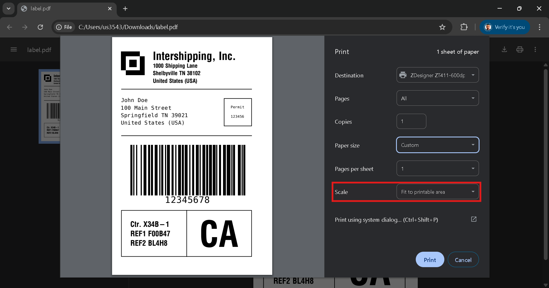 Be sure to check the option that fits the PDF file to paper size, the name may vary according to the client you are using. You can see 2 examples below: