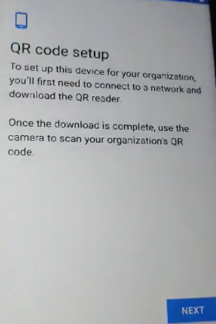- Scan the Android Enterprise QR code you have created and saved from the console.